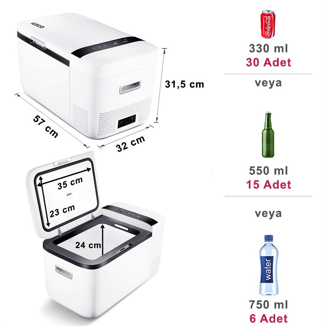 · ICECO araç buzdolabı soğutucu ve dondurucu olarak üstün performansla çalışacak şekilde tasarlanmıştır. İç yan duvarlarının tamamı özel soğutucu sistemle tasarlandığından, dijital termostat üzerinden yapılacak olan ayar ile rahatlıkla dondurucu olarak da çalıştırılabilir.